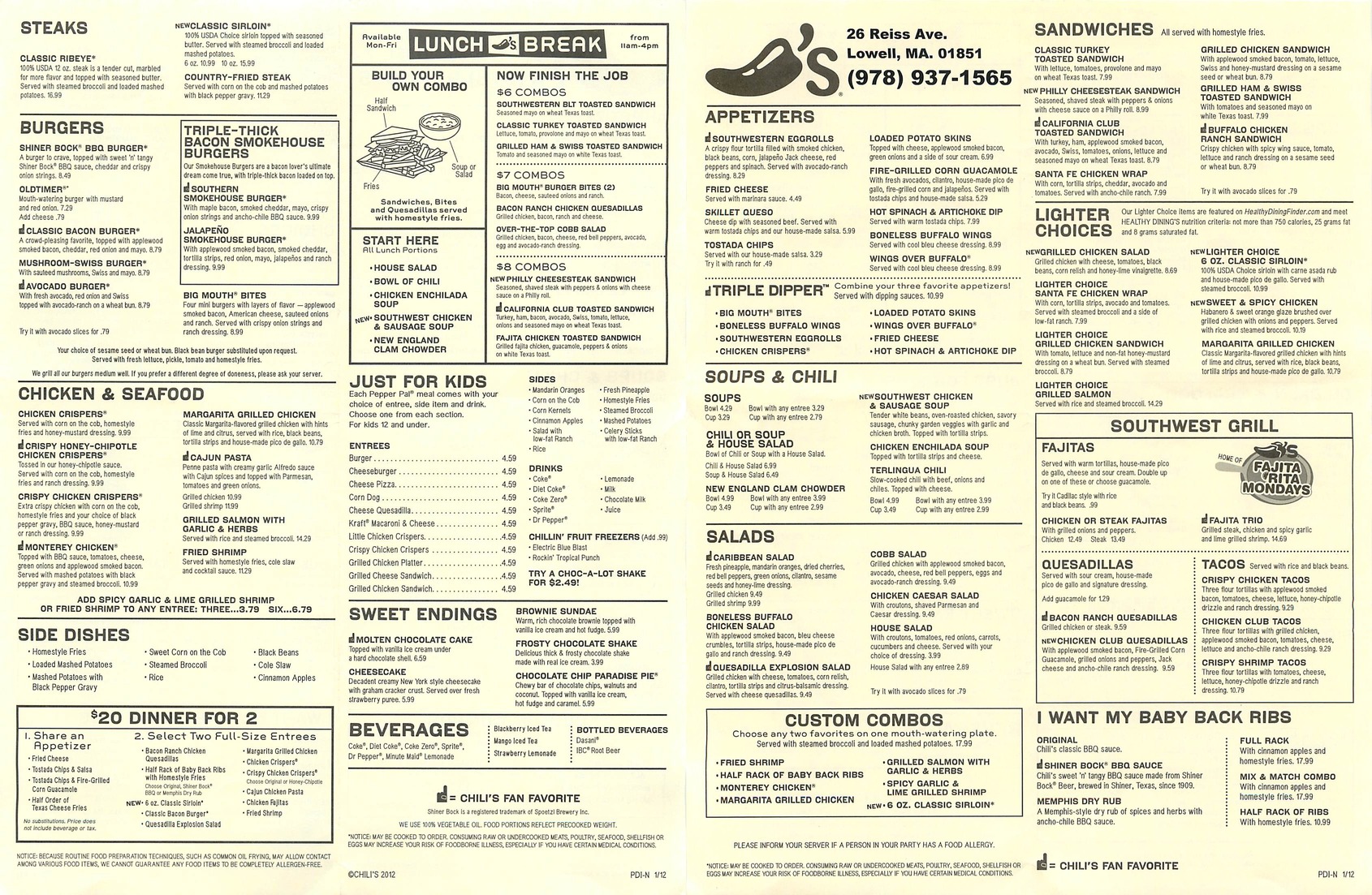 | Cafe Madrid Spanish and Cuban 116 Chelmsford Street Chelmsford 01824 (978) 256-2777 | | Chili's Texan/Mexican 26 Reiss Ave. Lowell 01851 978-937-1565 | |