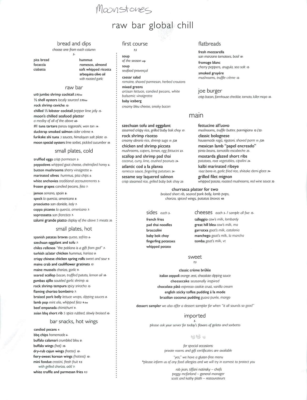 | Madras Grill Indian 7 Summer Street Chelmsford 01824 (978) 330-5133 | | Moonstones Tapas/Raw Bar 185 Chelmsford St Chelmsford 01824 978-256-7777 | |