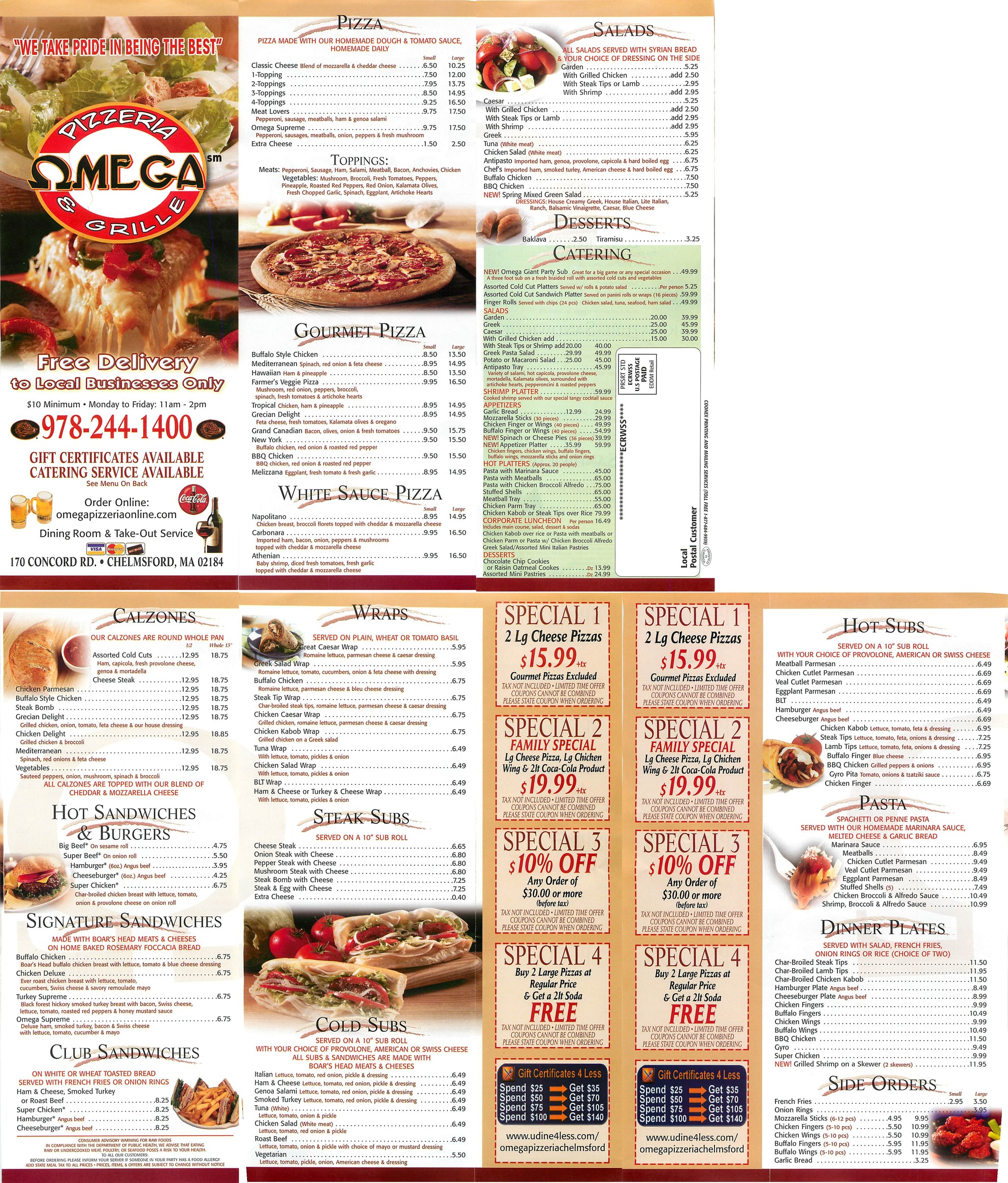 | Omega Pizzeria Pizza and Sandwiches 170 Concord Road Chelmsford 01824 978-244-1400 | | Outback Steakhouse Steakhouse 28 Reiss Ave. Lowell (978) 934-8700 | |